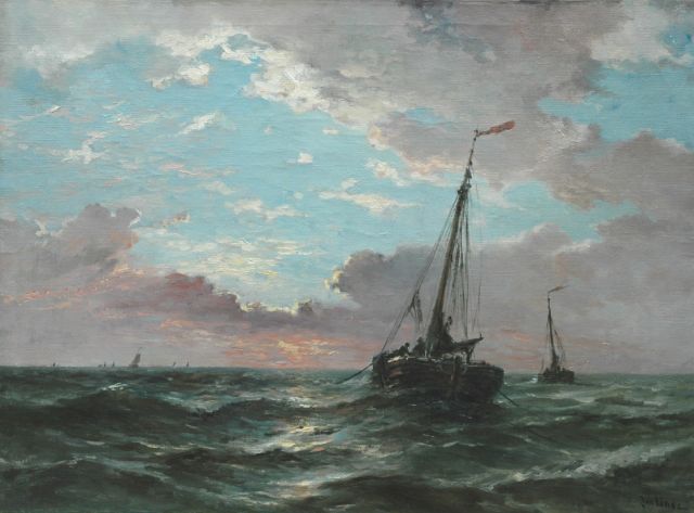 Jan van der Linde | Twee botters op volle zee, olieverf op doek, 74,6 x 100,8 cm, gesigneerd r.o.