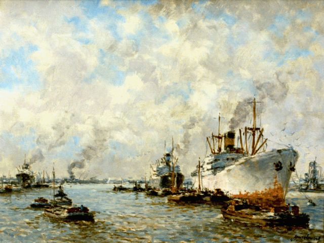 Joop Molenaar | Havengezicht, olieverf op doek, 30,4 x 40,5 cm, gesigneerd r.o.
