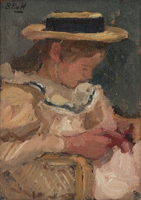 Joop van Leeuwen | De kleine kunstenares, olieverf op board, 45,0 x 35,1 cm, gesigneerd r.o.