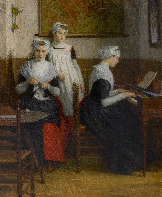 Nicolaas van der Waay | Drie Amsterdamse weesmeisjes, olieverf op doek, 71,5 x 60,3 cm, gesigneerd r.m.