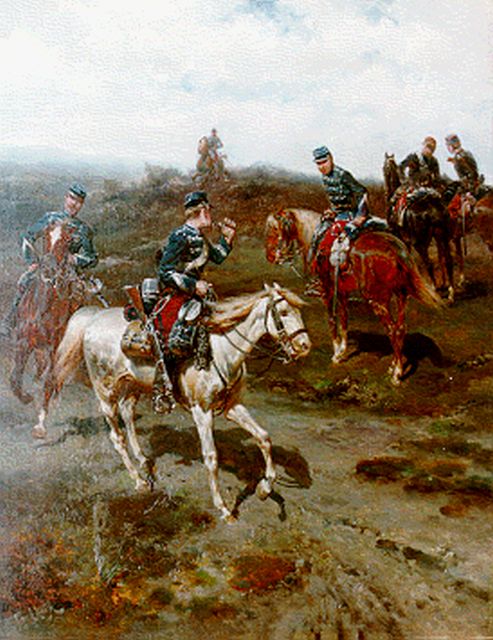Militairen te paard op de hei