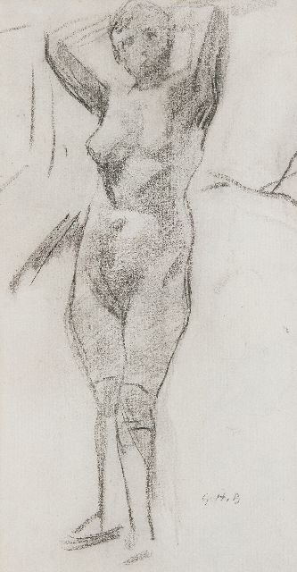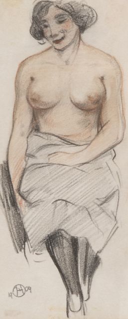 Eduard Houbolt | Zittend naakt, krijt op papier, 19,8 x 8,2 cm, gesigneerd l.o. met monogram en gedateerd 1909