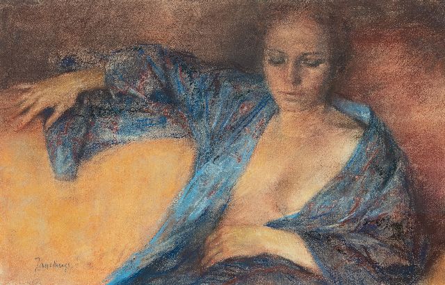 Jan Asselbergs | Vrouw in négligé, pastel op papier, 31,0 x 48,1 cm, gesigneerd l.o.