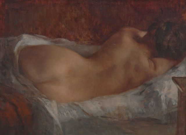 Toon Kelder | Naakt gezien van achteren, olieverf op paneel, 36,2 x 24,1 cm, gesigneerd l.o. en gedateerd 45-46