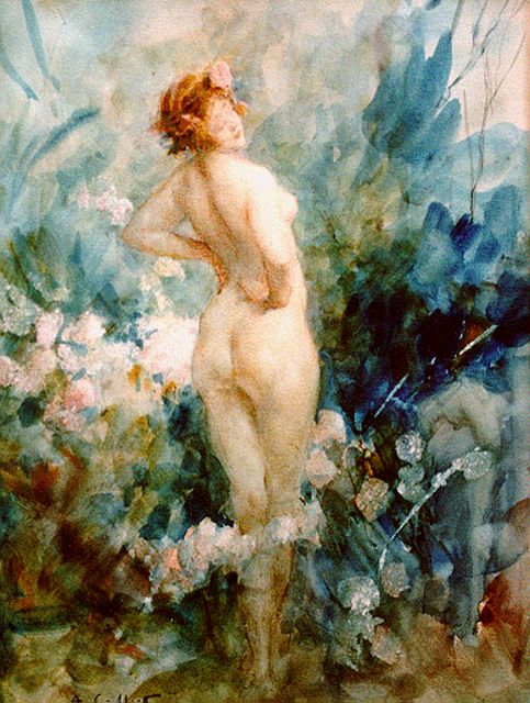 Ernest Albert | Zittend naakt, aquarel op papier, 25,5 x 32,0 cm, gesigneerd r.o.