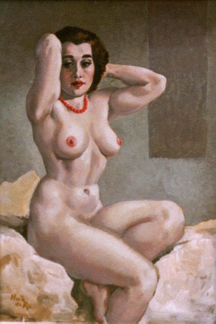 Henri Pinguenet | Zittend naakt, olieverf op paneel, 47,1 x 38,8 cm, gesigneerd l.o.