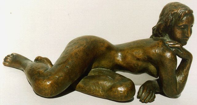 Jakob Wilhelm Fehrle | Liggend naakt, brons, gesigneerd onder en gedateerd '45