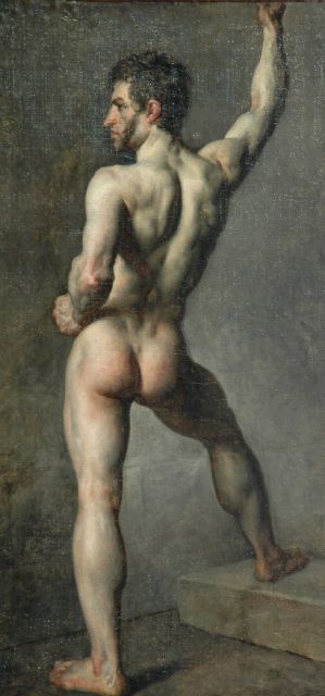 William Etty (toegeschreven aan) | Mannelijk naakt, olieverf op doek op board, 89,8 x 43,5 cm