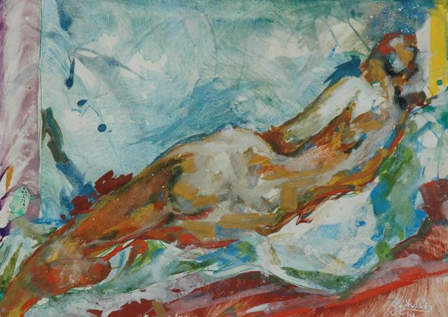 Toon Kelder | Liggend naakt, Oost-Indische inkt op papier, 32,5 x 48,0 cm, gesigneerd r.o. en gedateerd '49