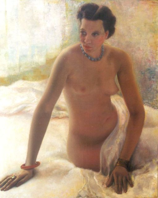 Jan Sluijters | Liggende mulattin op blauwe lap, olieverf op doek, 82,4 x 116,5 cm, gesigneerd r.b. en te dateren 1936