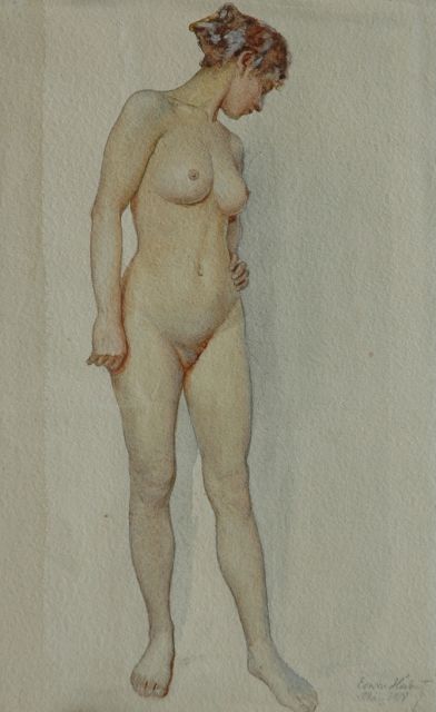 Erwin Hubert | Staand vrouwelijk naakt, potlood en aquarel op papier, 33,0 x 20,0 cm, gesigneerd r.o. en gedateerd März 1918