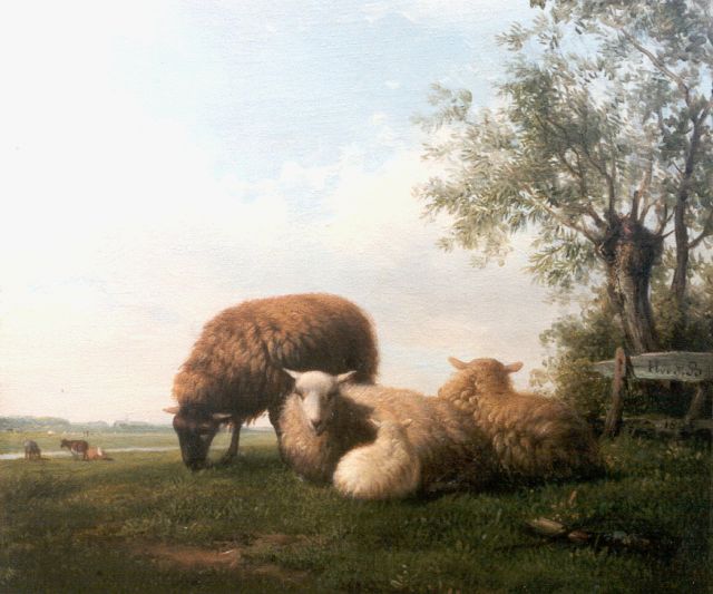 Hendrikus van de Sande Bakhuyzen | Schapen bij het hek, olieverf op paneel, 17,5 x 20,5 cm, gesigneerd r.o.h.h. en gedateerd 1825