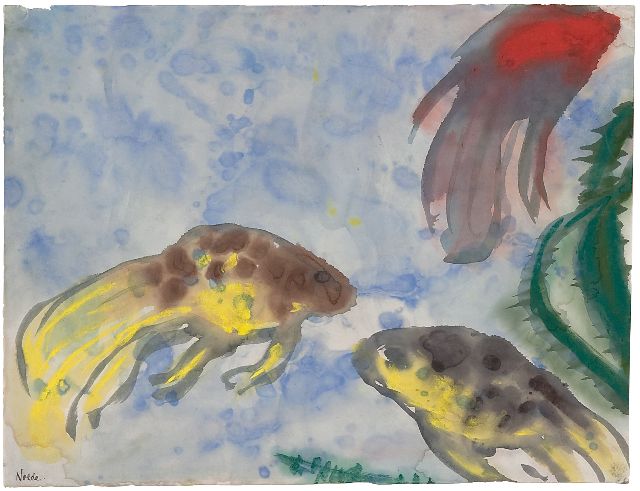 Gerrit Willem Dijsselhof | Rode ponen in een aquarium (niet te koop), olieverf op doek op paneel, 18,5 x 24,5 cm, gesigneerd l.o. met mon