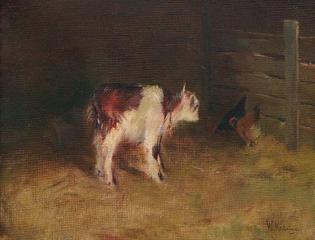 Willem Korteling | Geitje met kip, olieverf op doek, 31,0 x 40,1 cm, gesigneerd r.o.