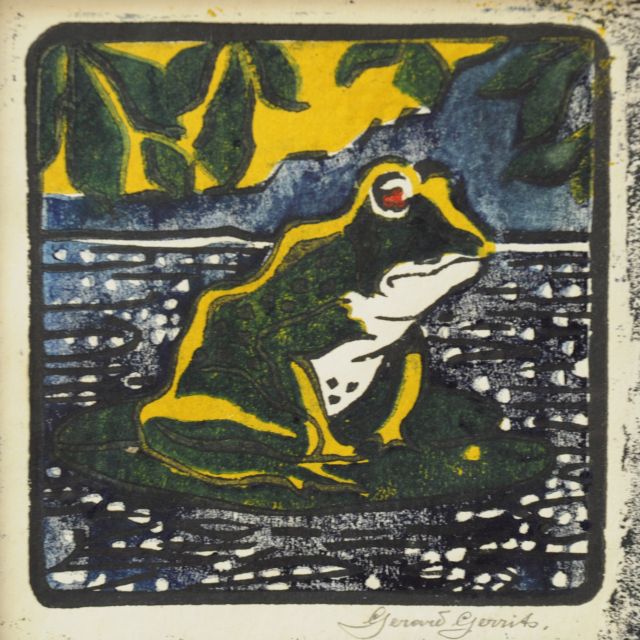 Gerard Christiaan Joseph Gerrits | Kikker, linosnede op papier, 16,0 x 16,0 cm, gesigneerd r.o.