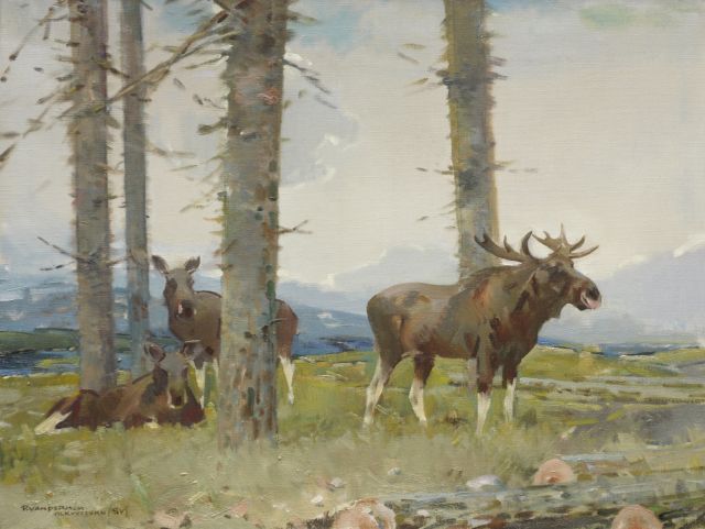 Piet van der Hem | Elanden bij Alkvettern, Zweden, olieverf op doek, 60,5 x 80,5 cm, gesigneerd l.o.