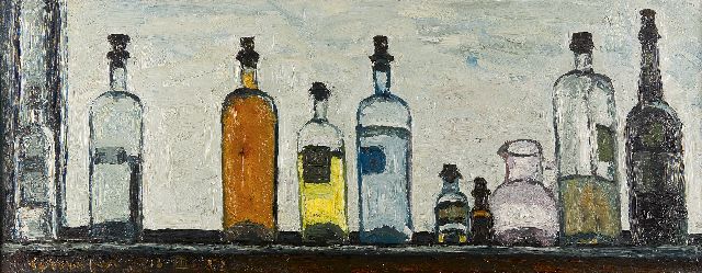 Willem Schrofer | Stilleven van flessen, olieverf op doek, 36,8 x 95,1 cm, gesigneerd l.o. en gedateerd 13-III-'52