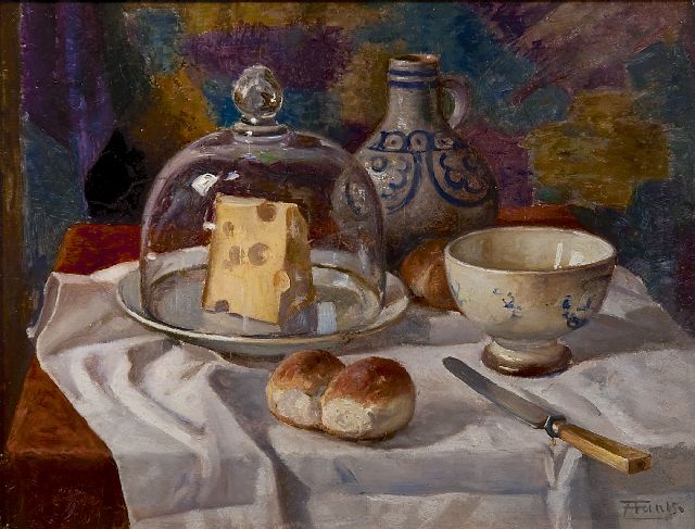 Frits Verdonk | Stilleven met wijnfles en gebakjes, olieverf op doek, 40,7 x 50,4 cm, gesigneerd r.o.