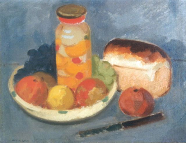 Henri Maclean | Fruitstilleven met brood en mes, olieverf op doek, 35,5 x 45,6 cm, gesigneerd l.o.