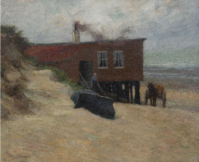 Edgard Farasijn | Schelpenvisser aan de Noordzeekust, olieverf op doek, 88,2 x 120,7 cm, gesigneerd l.o.
