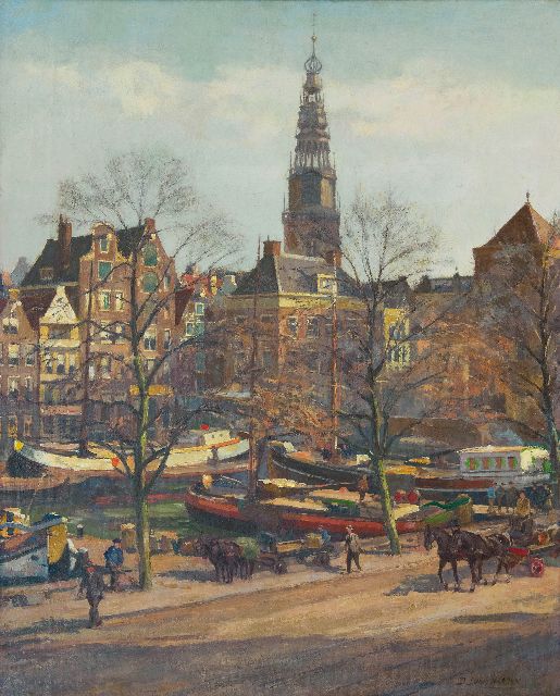 Dirk van Haaren | Stadsgezicht van Amsterdam met de Oudekerkstoren, olieverf op doek, 58,1 x 47,0 cm, gesigneerd r.o.