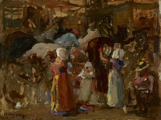 Cornelis Albertus Johannes Schermer | Paardenmarkt, olieverf op paneel, 25,7 x 39,9 cm, gesigneerd l.o.