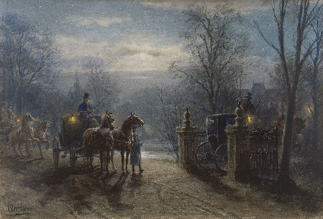 Otto Eerelman | Ontmoeting op weg naar de markt op Walcheren, olieverf op doek, 60,5 x 89,9 cm, gesigneerd l.o.
