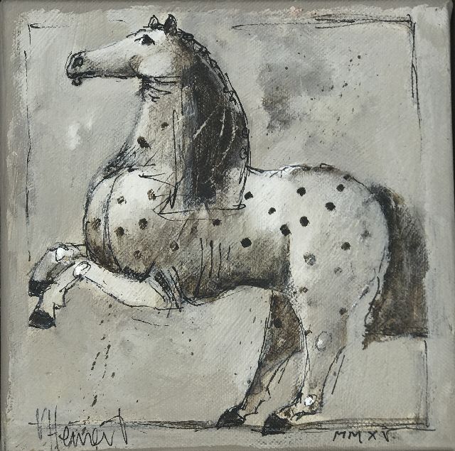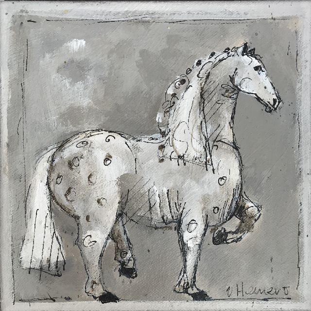 Evert van Hemert | Cavallucci 1, acryl op doek, 20,0 x 20,0 cm, gesigneerd r.o. en op spieraam