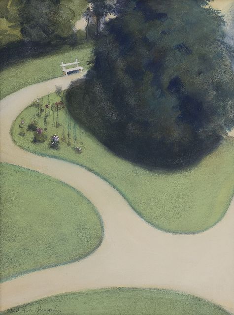 Charlotte Hampel | Het witte bankje, krijt en gouache op papier, 44,3 x 32,7 cm, gesigneerd l.o. en te dateren na 1897