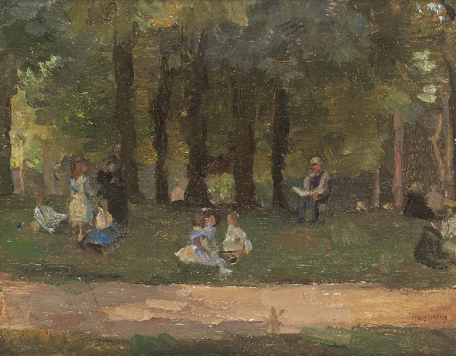 Isaac Israels | Parkscène, olieverf op doek, 32,2 x 40,6 cm, gesigneerd r.o.