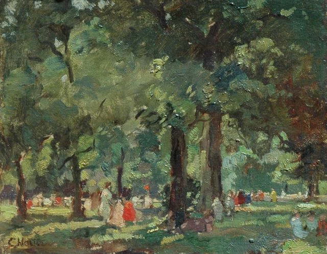 Cor Noltee | Zomer in het park, olieverf op doek op paneel, 31,7 x 39,2 cm, gesigneerd l.o.