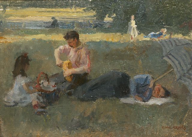 Isaac Israels | Picknick in het Bois de Boulogne, Parijs, olieverf op doek, 43,5 x 60,0 cm, gesigneerd r.o. en te dateren ca. 1905