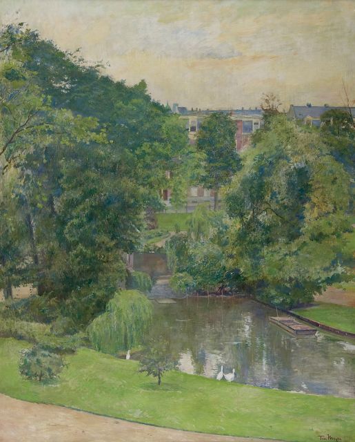 Ton Meijer | Het Sarphatipark in de zomer, Amsterdam, olieverf op doek, 100,1 x 80,2 cm, gesigneerd r.o. en verso
