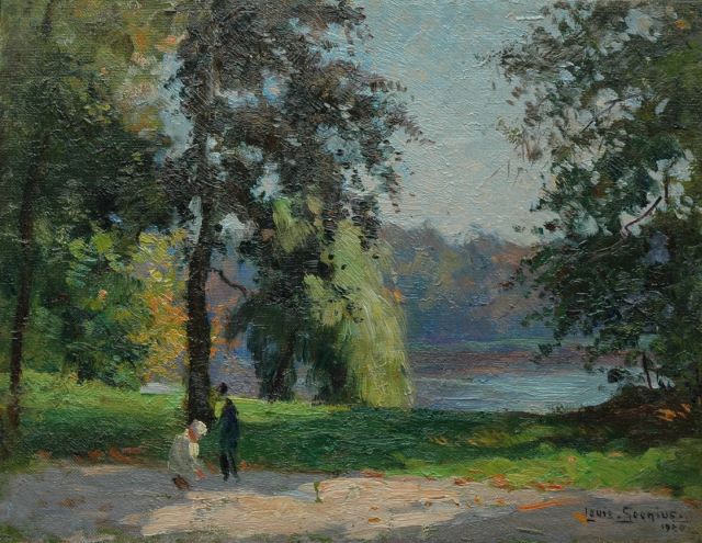 Louis Soonius | In het park, olieverf op doek op paneel, 27,2 x 35,1 cm, gesigneerd r.o. en gedateerd 1920