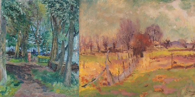 Jan Altink | Langs het Paterswoldsemeer; verso: landschap met knotwilgen, olieverf op doek, 60,9 x 50,8 cm, gesigneerd r.o. en verso en gedateerd '41 en verso '48