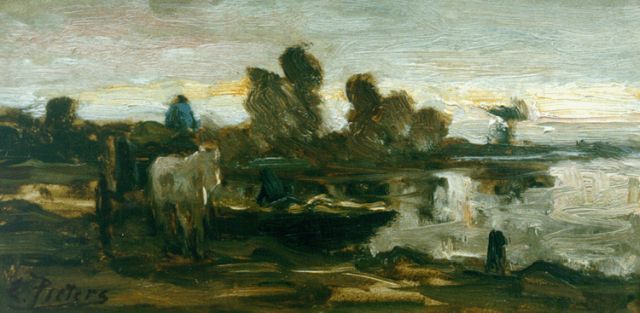 Piet van Wijngaerdt | Landschap bij Amstelveen, olieverf op paneel, 12,3 x 16,7 cm, gesigneerd l.o.