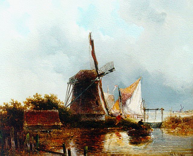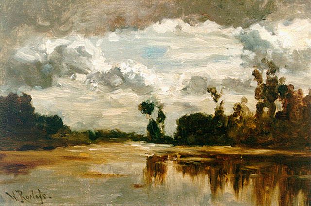 Willem Roelofs | Poldervaart, olieverf op doek, 31,0 x 43,5 cm, gesigneerd l.o.