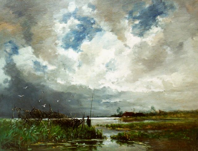 Jan Hendrik Weissenbruch | Hengelaar in polderlandschap, olieverf op paneel, 16,2 x 29,1 cm, gesigneerd l.o.