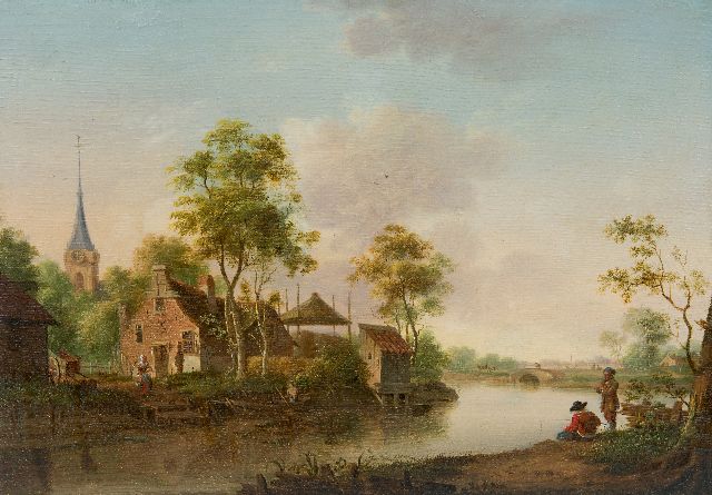 Charles Leickert | Langs de rivier, olieverf op paneel, 17,9 x 24,8 cm, gesigneerd l.o.