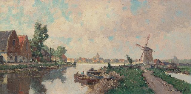 Jan Willem van Borselen | Gezicht op riviertje De Vlist, olieverf op doek, 45,5 x 70,5 cm, gesigneerd r.o.