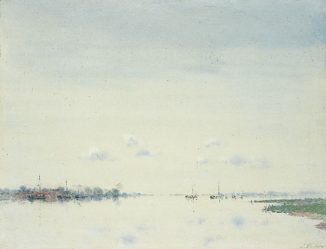 Johan Hendrik van Mastenbroek | Rustig riviergezicht, olieverf op doek, 43,5 x 71,5 cm, gesigneerd r.o. en gedateerd 1919