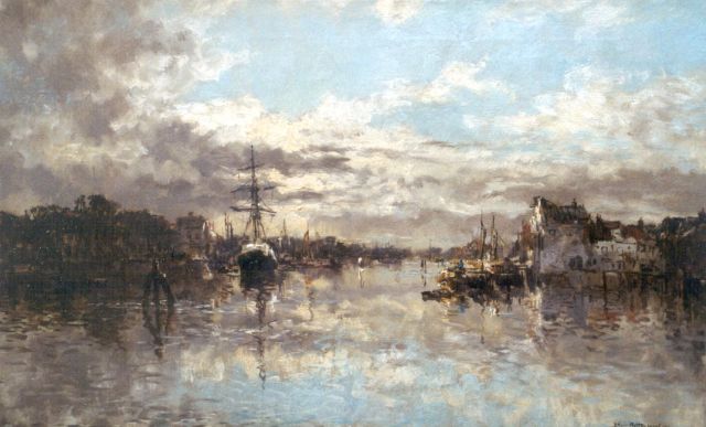 Jacob Maris | Schepen op de Merwede bij Dordrecht, olieverf op doek, 58,7 x 89,0 cm, gesigneerd r.o.