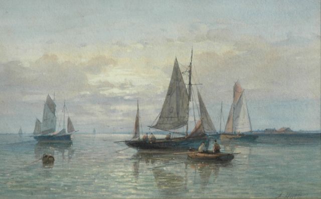 Hendrik Hulk | Platbodems in een riviermonding, olieverf op doek, 44,5 x 67,3 cm, gesigneerd r.o.