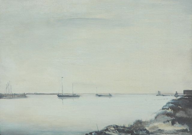 Willem van den Berg | Havenhoofd met binnenvarende schepen, olieverf op board, 30,7 x 42,6 cm, gesigneerd r.o. en gedateerd 1939