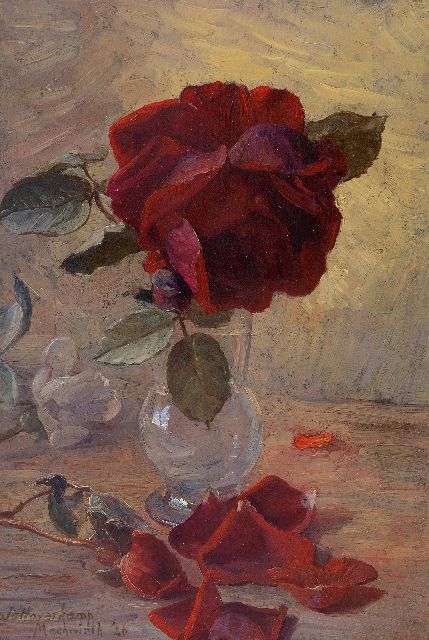 Johanna Haverkamp-Machwirth | Stilleven met rozen, olieverf op paneel, 32,9 x 22,5 cm, gesigneerd l.o. en gedateerd '26