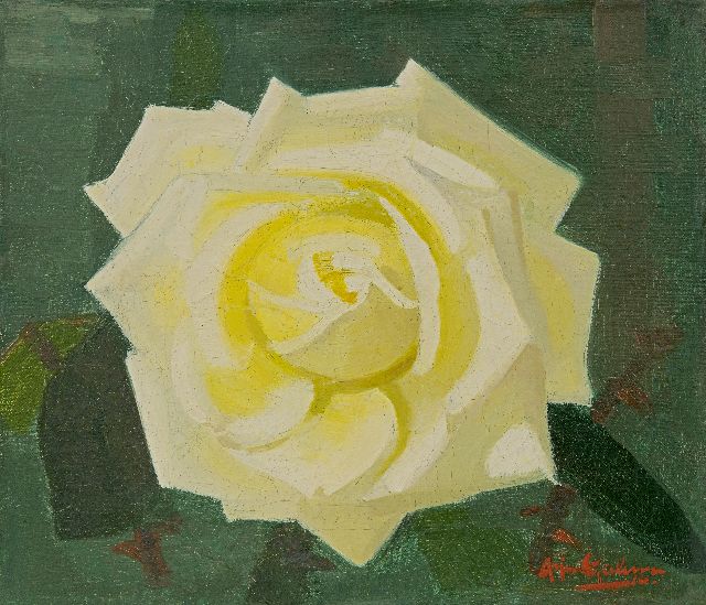 Arjen Galema | Gele roos, olieverf op doek, 25,3 x 29,6 cm, gesigneerd r.o.
