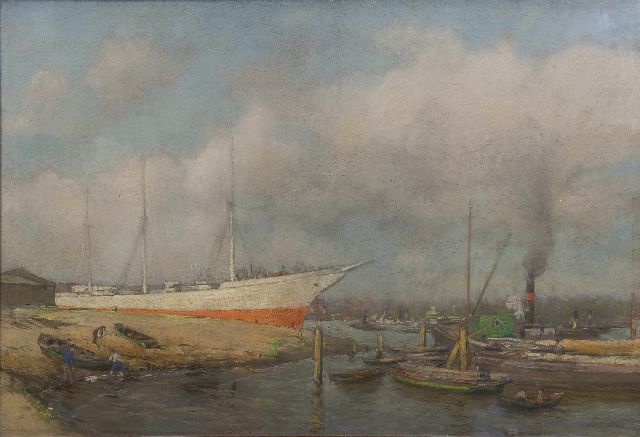 Herman Heijenbrock | Scheepswerf, pastel op papier, 62,4 x 92,4 cm, gesigneerd r.o.