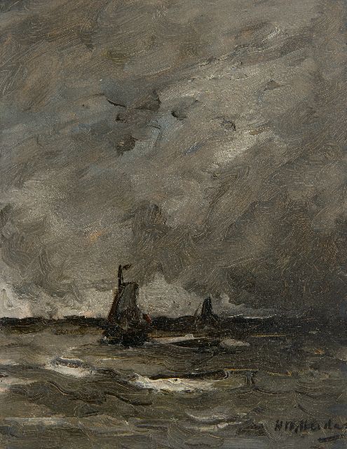 Hendrik Willem Mesdag | Het vertrek van de vissersvloot, Scheveningen, olieverf op doek, 50,5 x 40,5 cm, gesigneerd r.o.