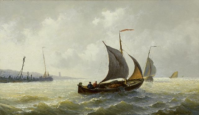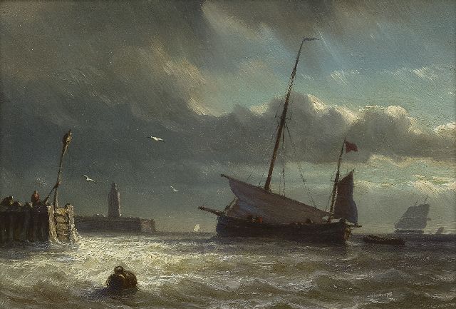 Abraham Hulk | Zeilschepen voor een woelige haveningang, olieverf op doek, 56,7 x 86,2 cm, gesigneerd r.o.