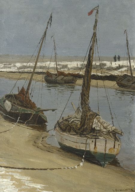 Ludolph Berkemeier | De Uitwatering in Katwijk aan Zee bij eb, olieverf op paneel, 35,5 x 25,1 cm, gesigneerd r.o.